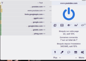 En me rendant chez des client.es, il m’arrive de constater qu’aucun antipubs n’est installé sur leur navigateur Internet. Ainsi, quand une vidéo Youtube est lancée, il faut attendre la fin de la pub pour pouvoir la visionner. Évidemment les vidéos sur des chaînes Peertube comme Elucid, Blast, Au Poste, Le Media, etc. n’ont pas cet inconvénient car ces médias se financent par les dons des internautes. Mais on ne trouve pas encore tout ce qu’on veut sur Peertube.